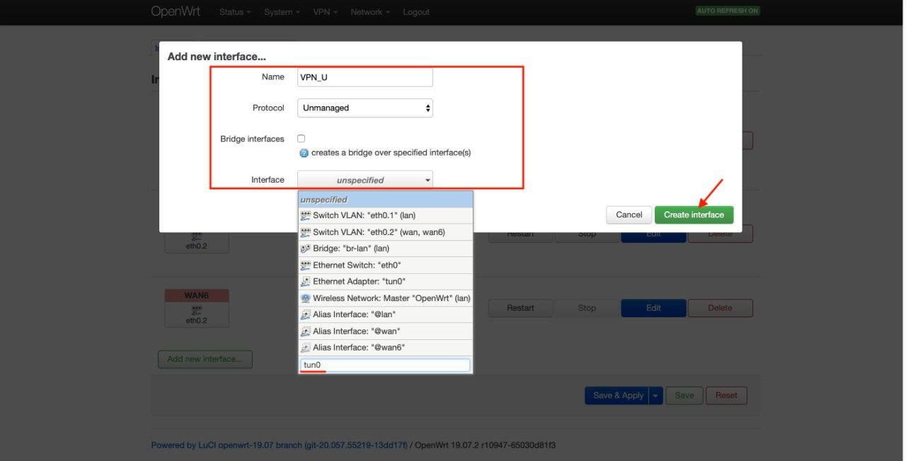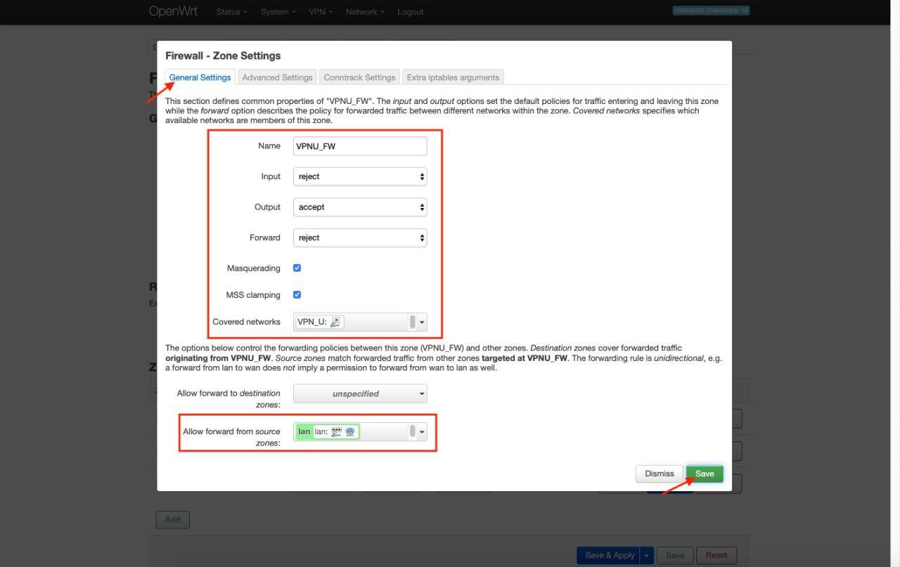 - Dans le champ Create/Assign firewall-zone (Créer/Attribuer une zone de Firewall) entrez VPN _FW.
