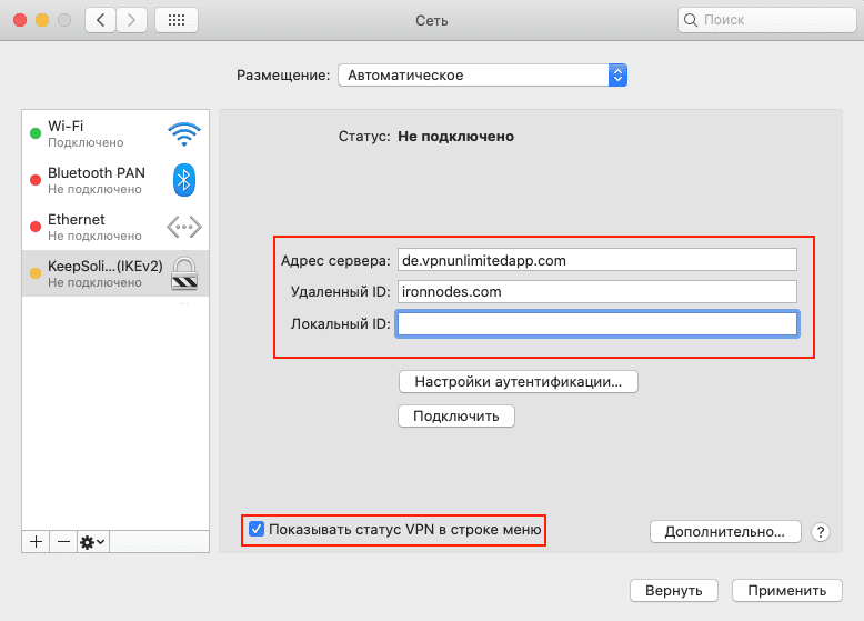 Как я могу подключиться к VPN-серверу по IKEv2 на macOS?