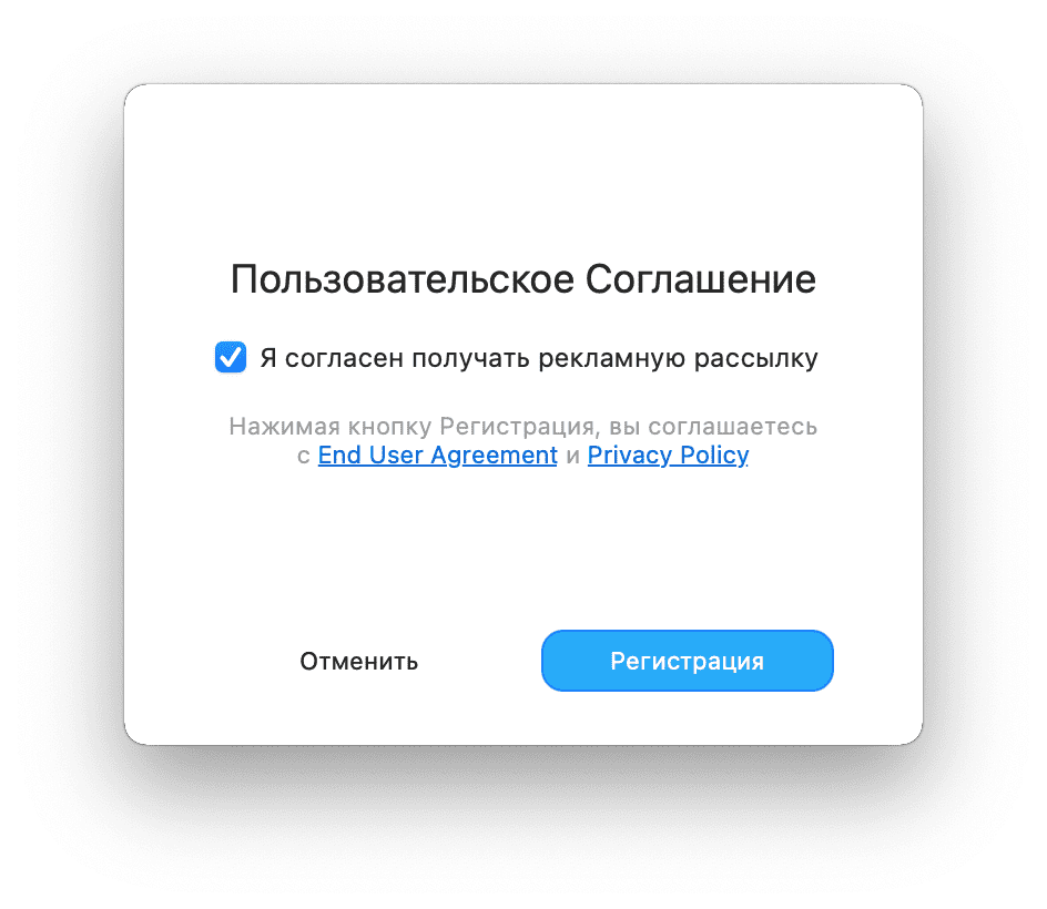 2. Если вы новый клиент сервисов KeepSolid, вы увидите следующее всплывающее окно. Нажмите кнопку Регистрация, чтобы продолжить.